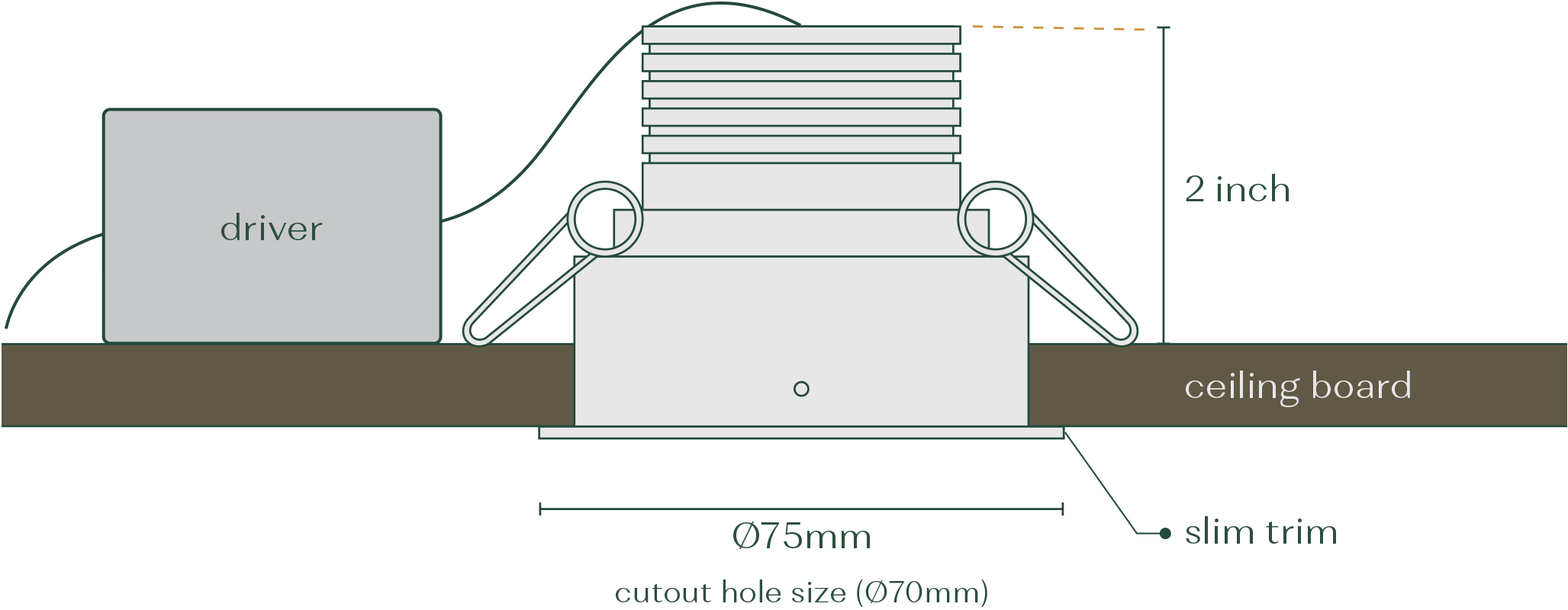 • 70mm Cutout | 75mm Trim | 50mm Ceiling Void